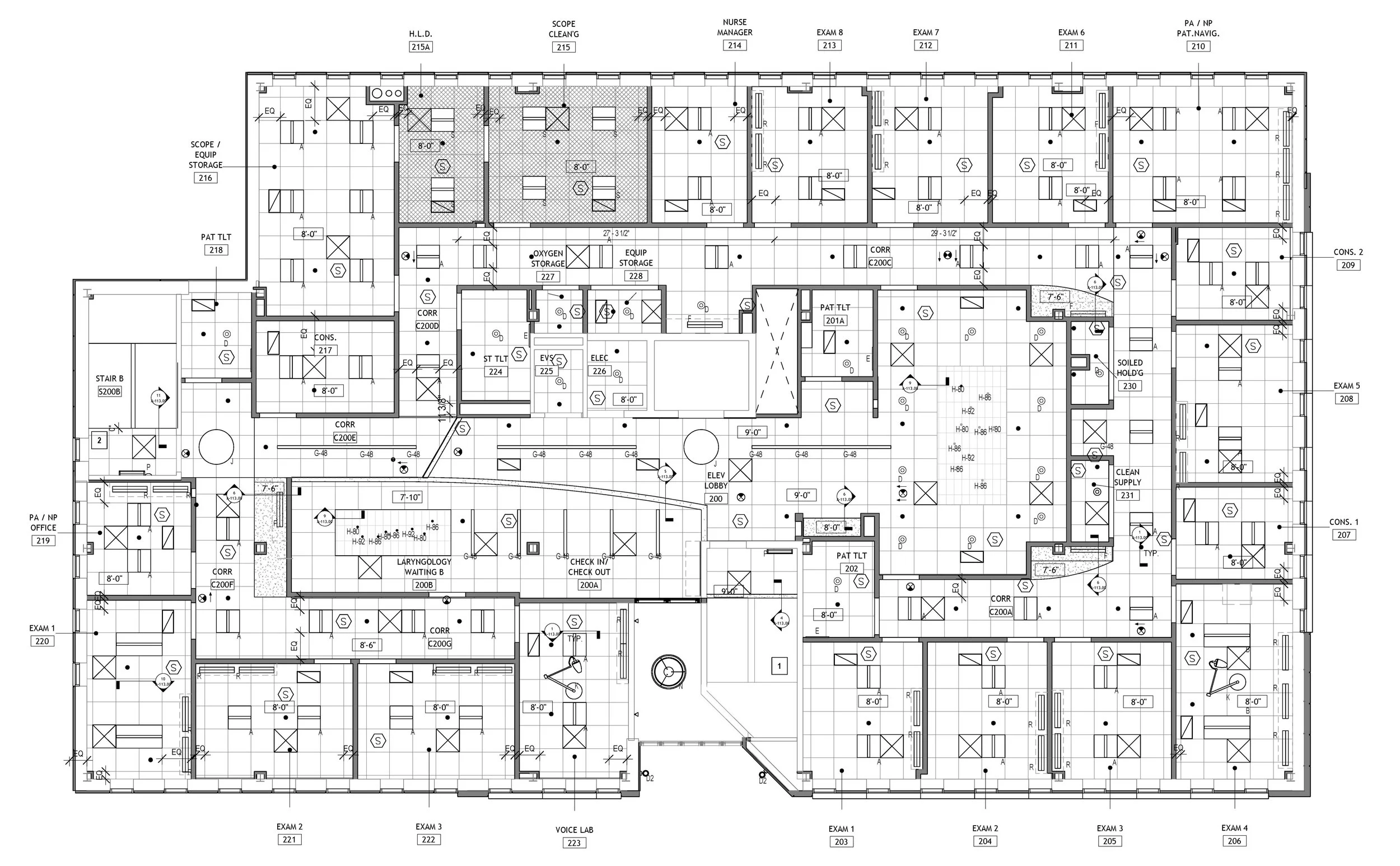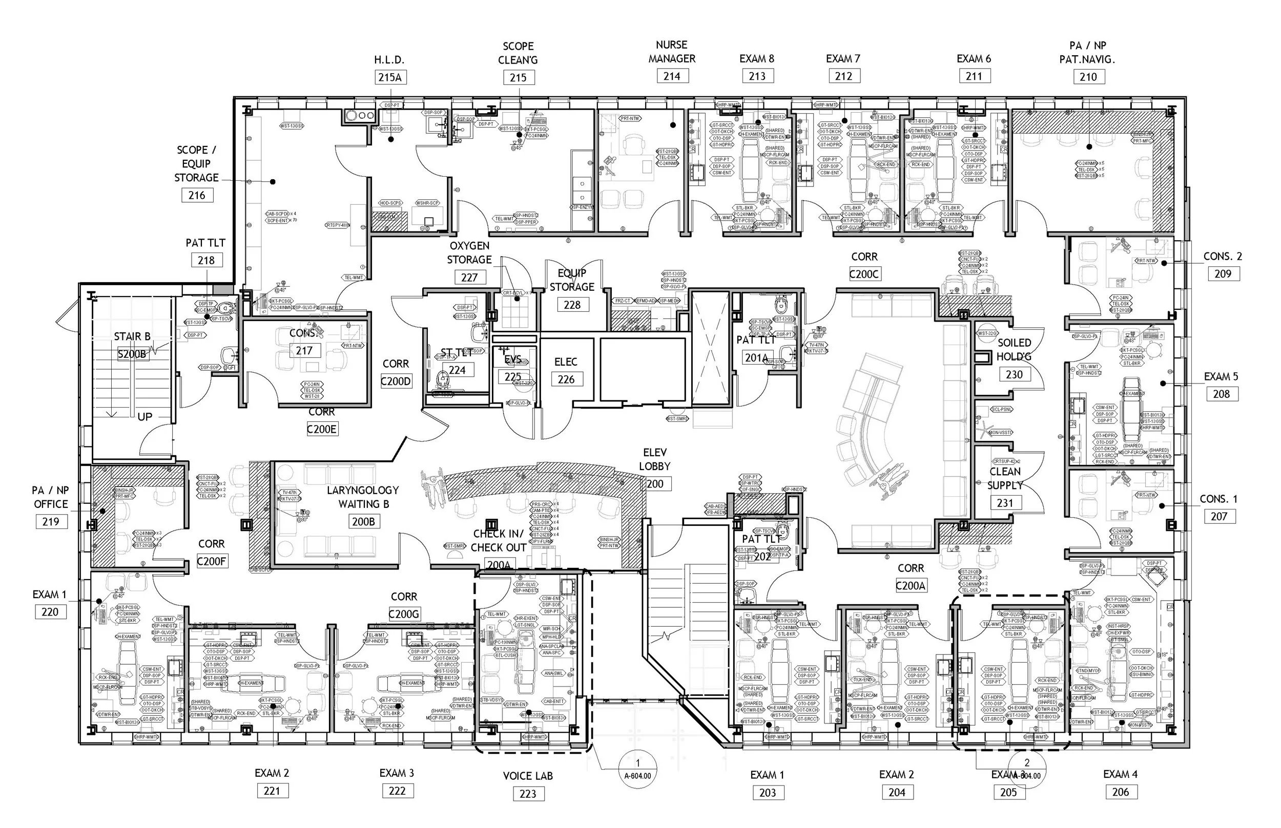 New 18,000 SF Facility for Otolarynogology Care with a Trespa Rainscreen Paneling Facade with Custom Millwork Interior.